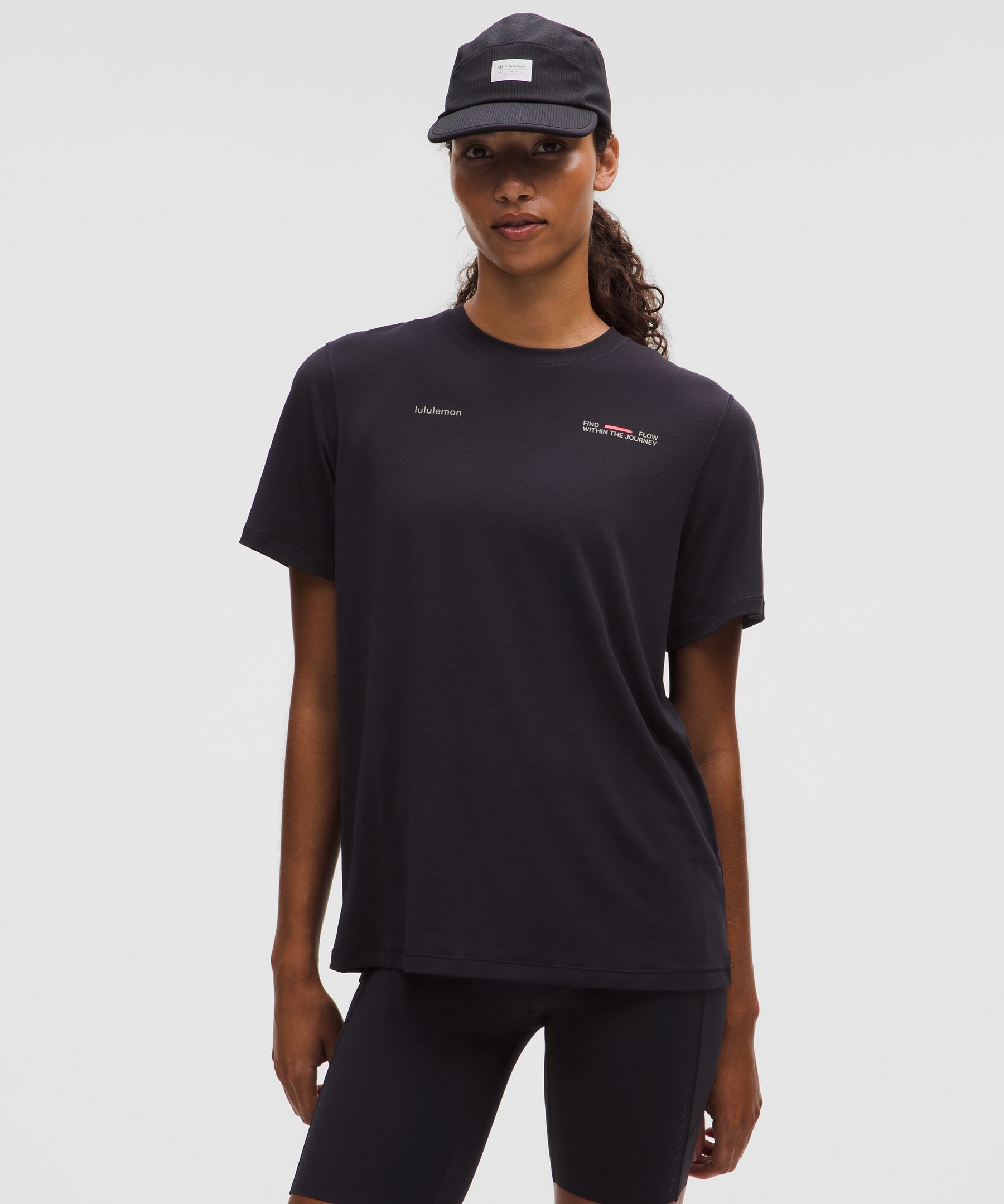 Anti Stink. Designed for Training. A loose fit with a little extra room. Long length keeps bum and hips covered. It’s giving versatility. This training top combines technical performance with the ultra-soft feel of your favourite lounge shirt. | lululemon – Women’s Jersey Training Short-Sleeve Shirt Graphic – Color Black – Size 4