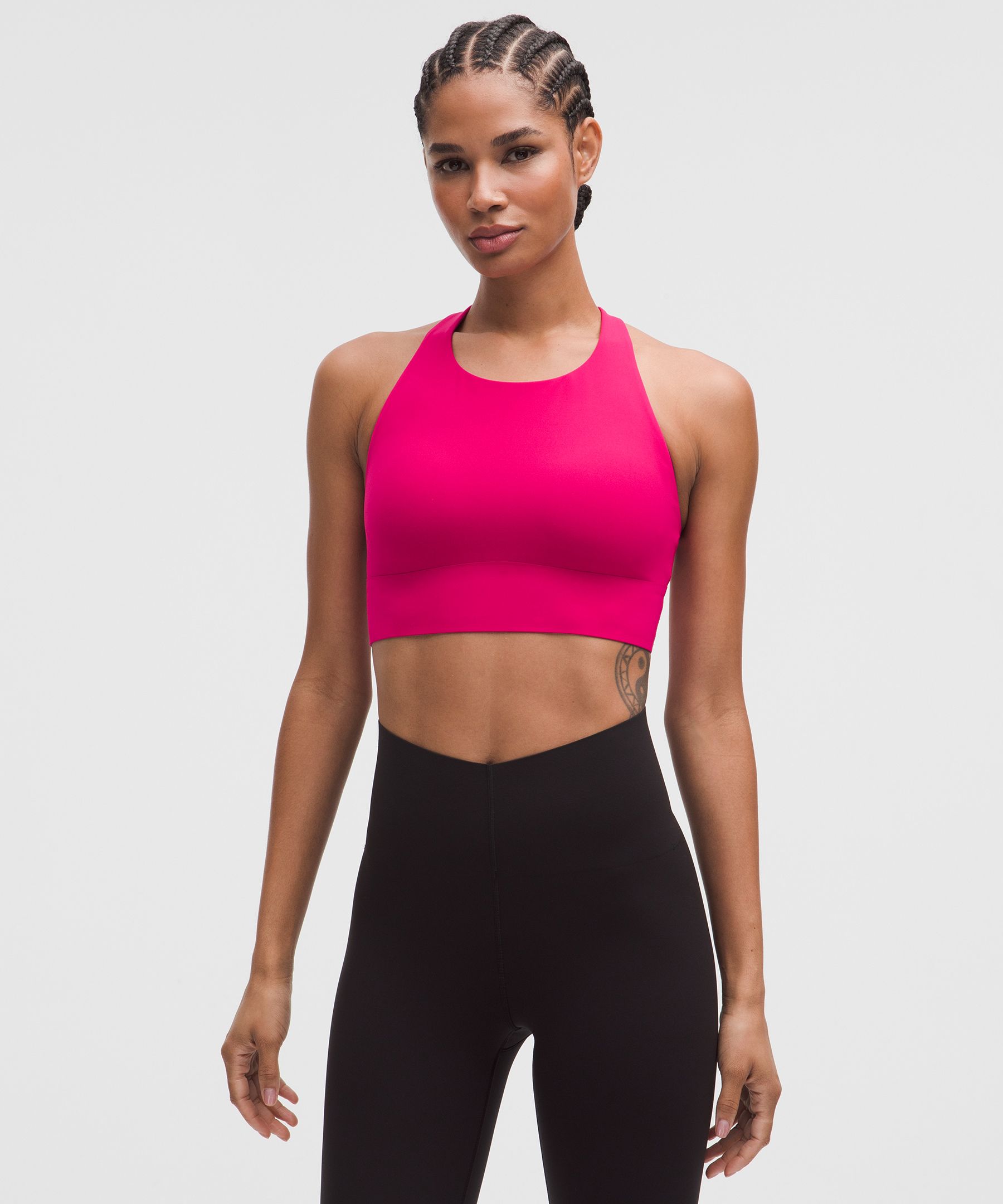 Designed for Training. Intended for medium-impact activities. Weightlifting wonder. This sports bra gives you moderate support with a lightweight, comfortable fit for strength training in the gym. We designed it with breathable, built-in cups for extra support and coverage that’s fuss free. | lululemon – Women’s LightLift Sports Bra Medium Support, B/C Cup – Color Pink – Size Small