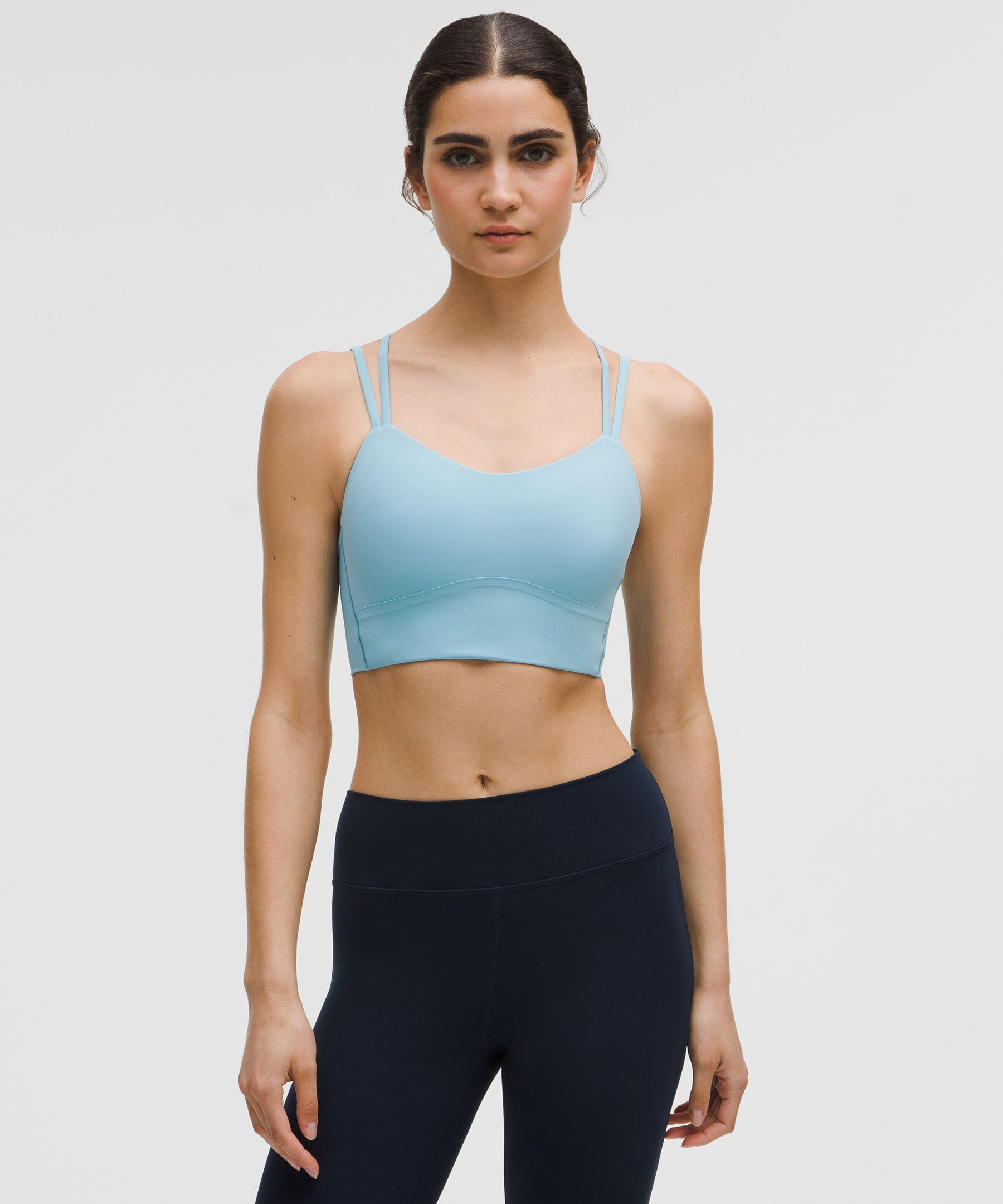 Lightweight. Designed for Yoga and Casual. Intended for low-impact activities. This yoga bra’s made with marshmallowy-soft foam cups and supple fabric to keep you comfortable during your practice-but we won’t be surprised if you wear it all day. | lululemon – Women’s Like a Cloud Longline Sports Bra Light Support, B/C Cup – Color Blue – Size 12