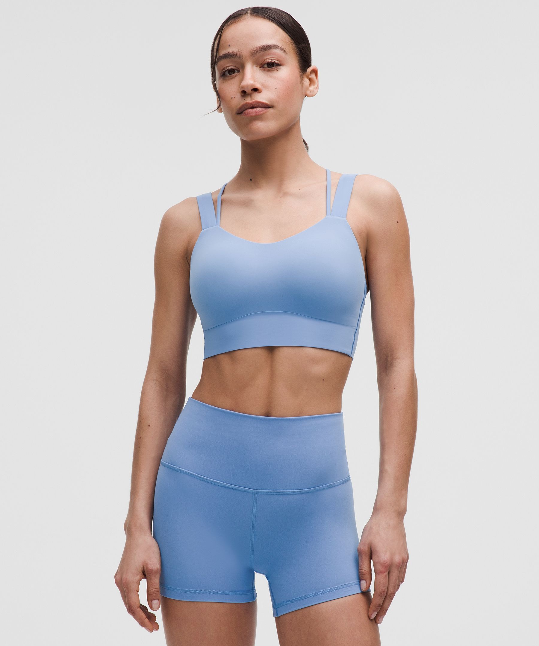 Lightweight. Designed for Yoga and Casual. Intended for low-impact activities. This yoga bra’s made with marshmallowy-soft foam cups and supple fabric to keep you comfortable during your practice-but we won’t be surprised if you wear it all day. | lululemon – Women’s Like a Cloud Longline Sports Bra Light Support, D/DD Cup – Color Blue – Size 14