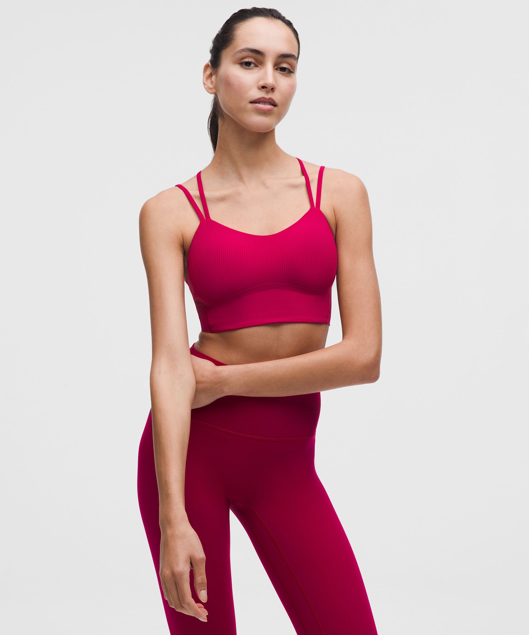 Lightweight. Designed for Yoga and Casual. Intended for low-impact activities. This yoga bra’s made with marshmallowy-soft foam cups and supple fabric to keep you comfortable during your practice-but we won’t be surprised if you wear it all day. | lululemon – Women’s Like a Cloud Ribbed Longline Sports Bra Light Support, B/C Cup – Color Pink – Size 16