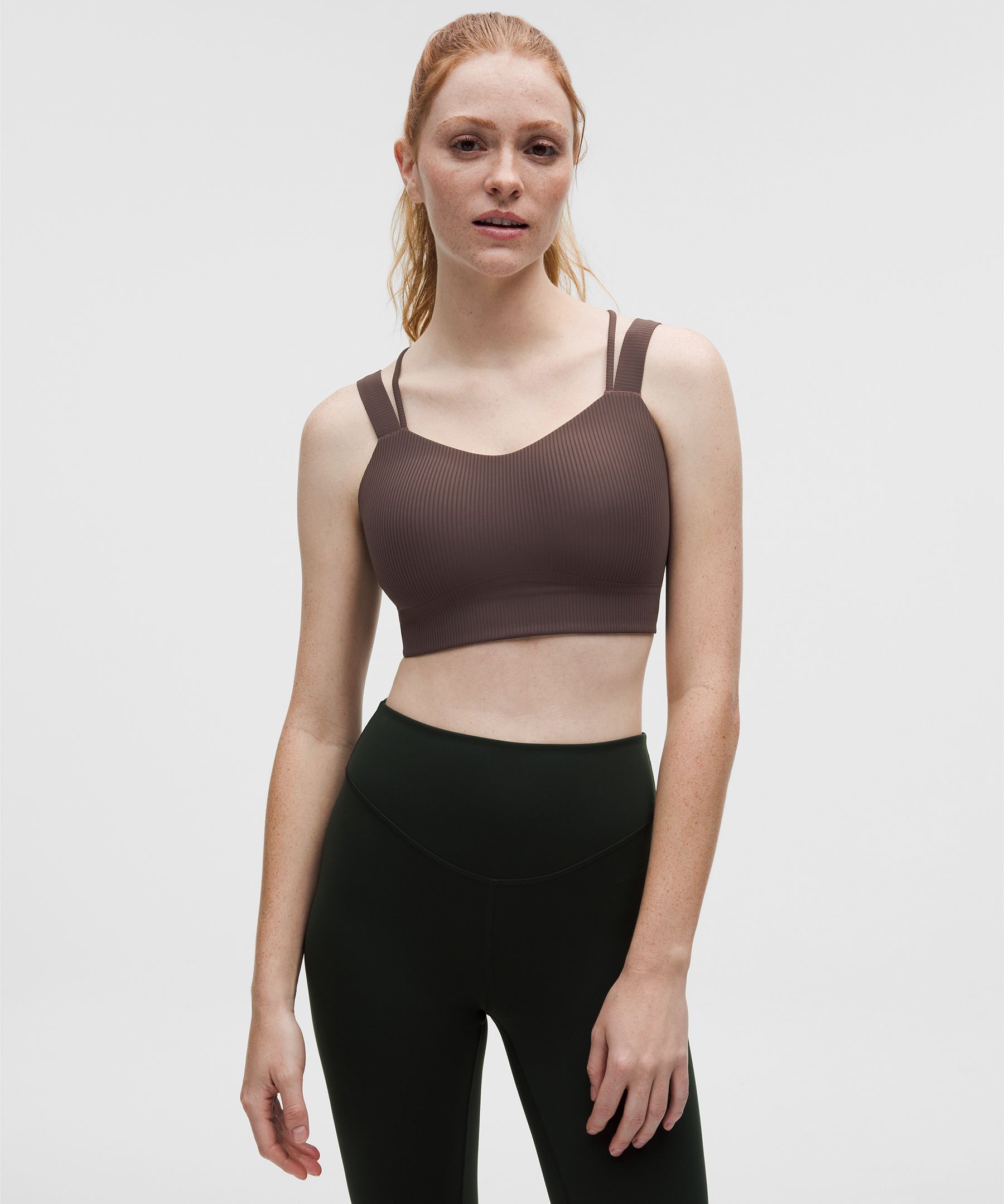 lululemon – Women’s Like a Cloud Ribbed Longline Sports Bra Light Support, D/DD Cup – Color Brown – Size 12