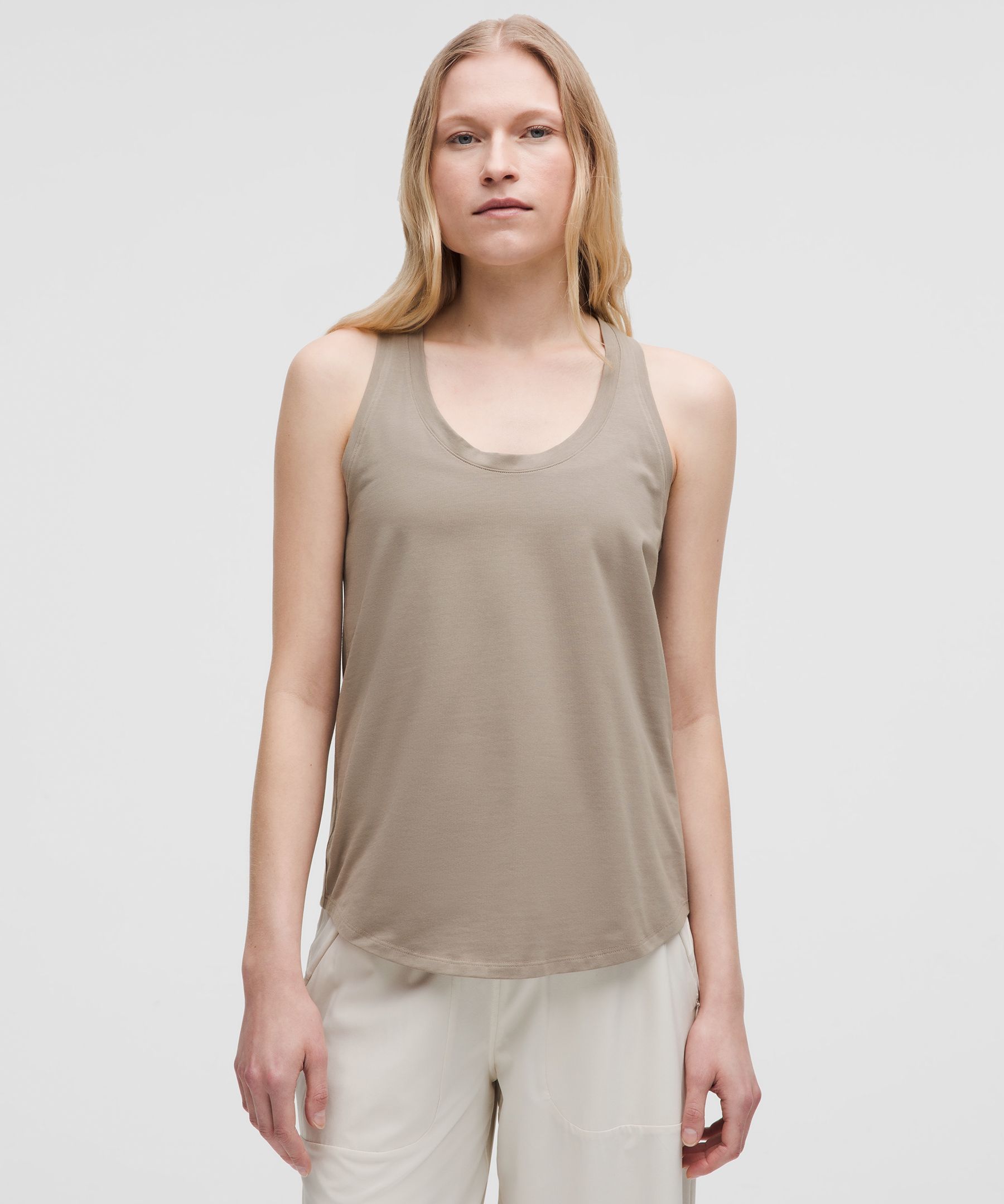 Lightweight. Designed for Casual. An easy fit that floats away from your body. Sits below the waistband for moderate, everyday coverage. Lots of reasons to love this tank top. Soft cotton fabric, a hint of stretch, and a just-right curved hem that pairs perfectly with leggings. | lululemon – Women’s Love Tank Top – Color Grey/Khaki – Size 16