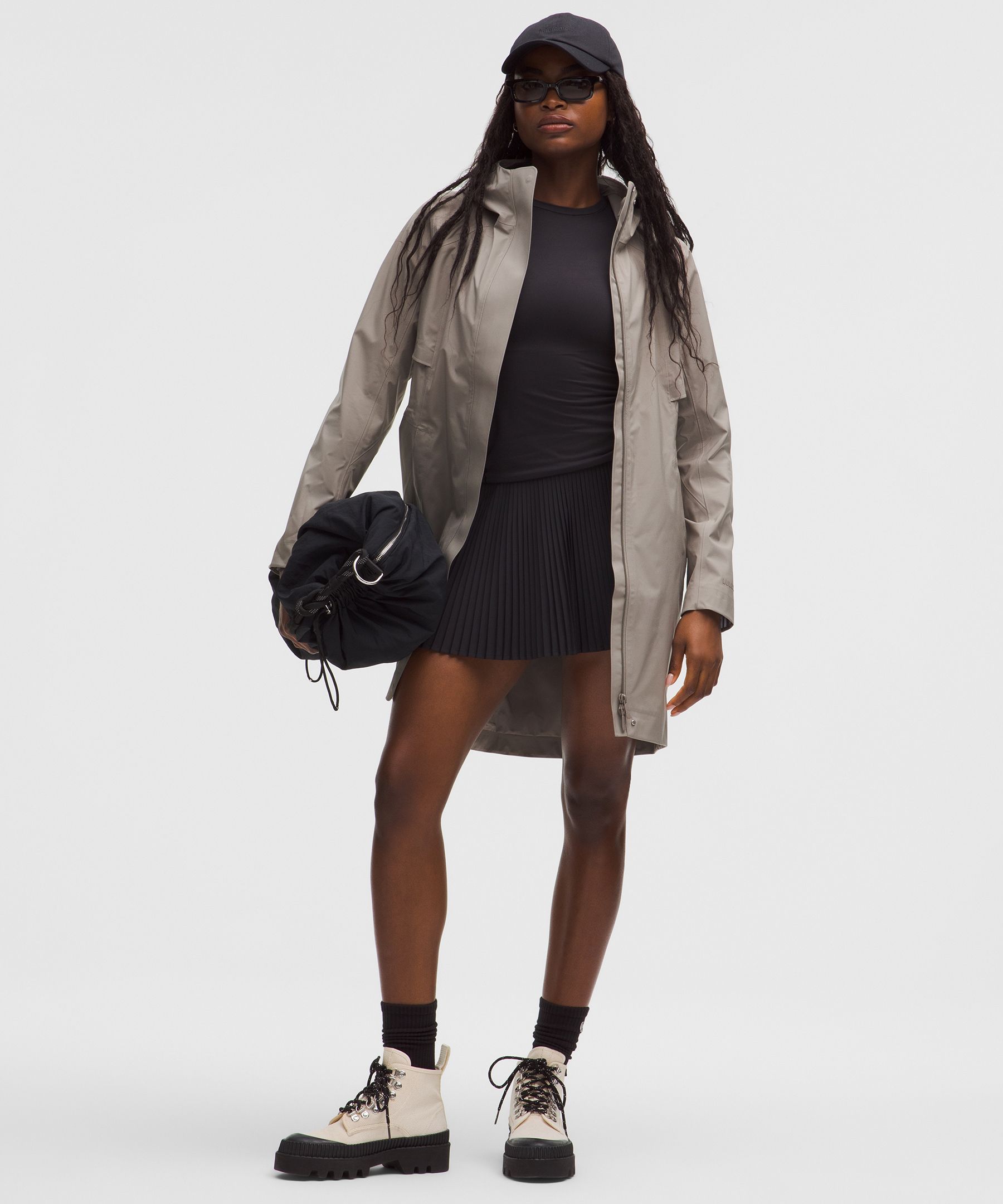 Pocketed, Reflective, Waterproof, Drawstring. Designed for Casual. Classic fit falls away from your body with room for layering. Shake off wet weather with this luxuriously smooth rain jacket. Waterproof fabric and a soft, sweat-wicking liner keep you dry and comfortable all day long. | lululemon – Women’s Rain Rebel Jacket – Color Grey/Khaki – Size 4