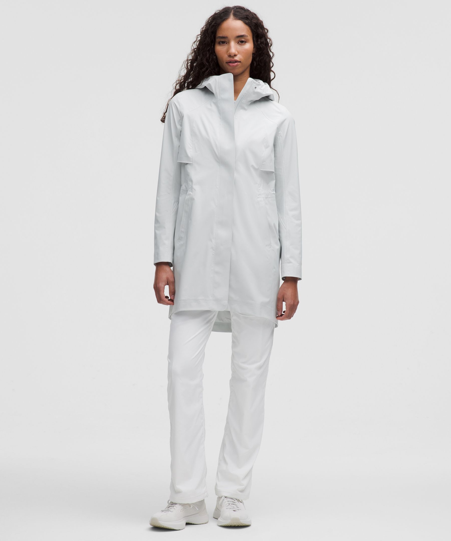 Pocketed, Reflective, Waterproof, Drawstring. Designed for Casual. Classic fit falls away from your body with room for layering. Shake off wet weather with this luxuriously smooth rain jacket. Waterproof fabric and a soft, sweat-wicking liner keep you dry and comfortable all day long. | lululemon – Women’s Rain Rebel Jacket – Color White – Size 16