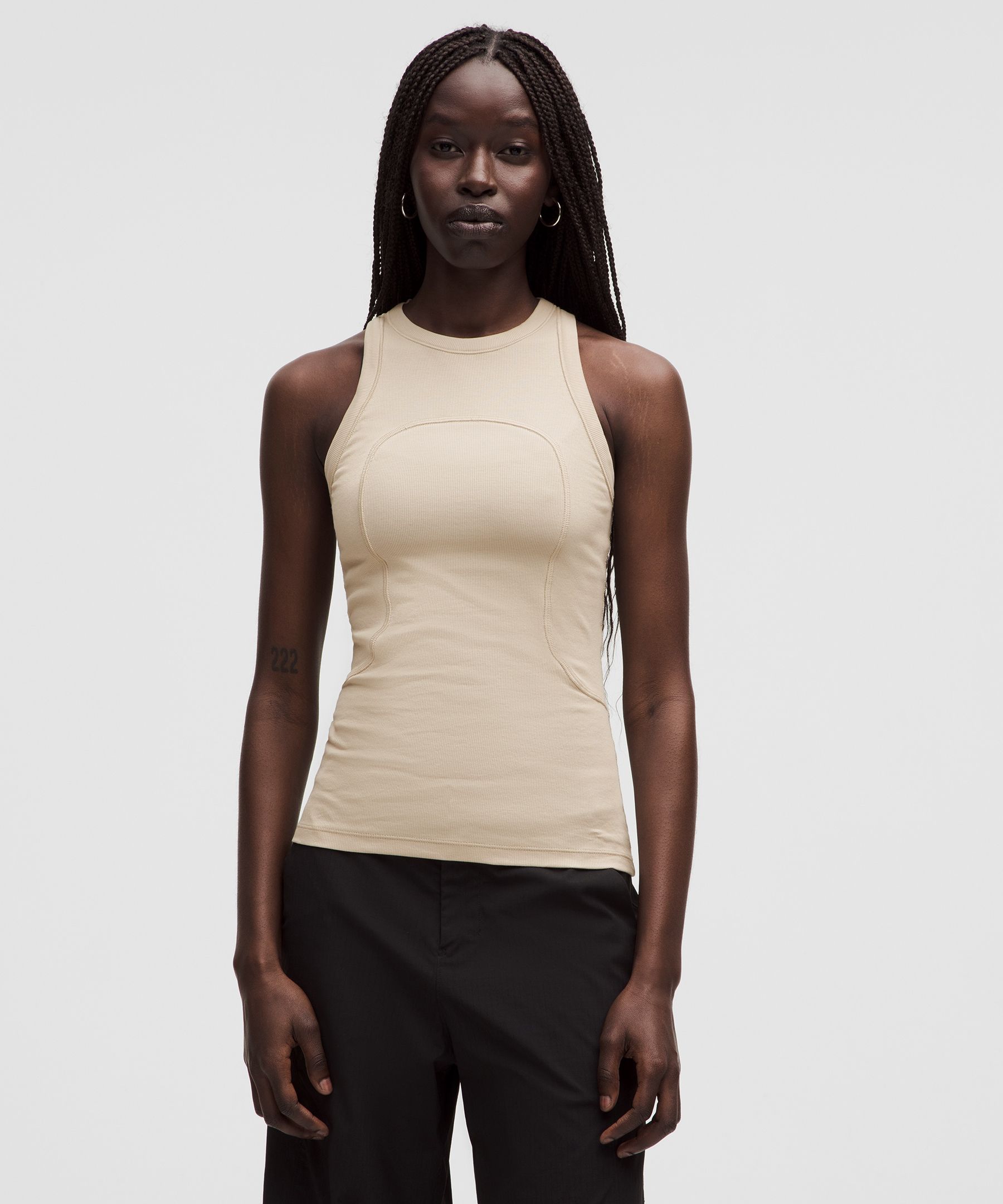 Designed for Casual. Contours your body. Sits below the waistband for moderate, everyday coverage. Blending innovation and artistry, every piece in this collaboration moves beyond boundaries for a new kind of movement. Signature seam lines add distinctive style to this tank. | lululemon – Women’s Ribbed Stretch-Cotton Tank Top SLNSH Collection – Color White – Size 18
