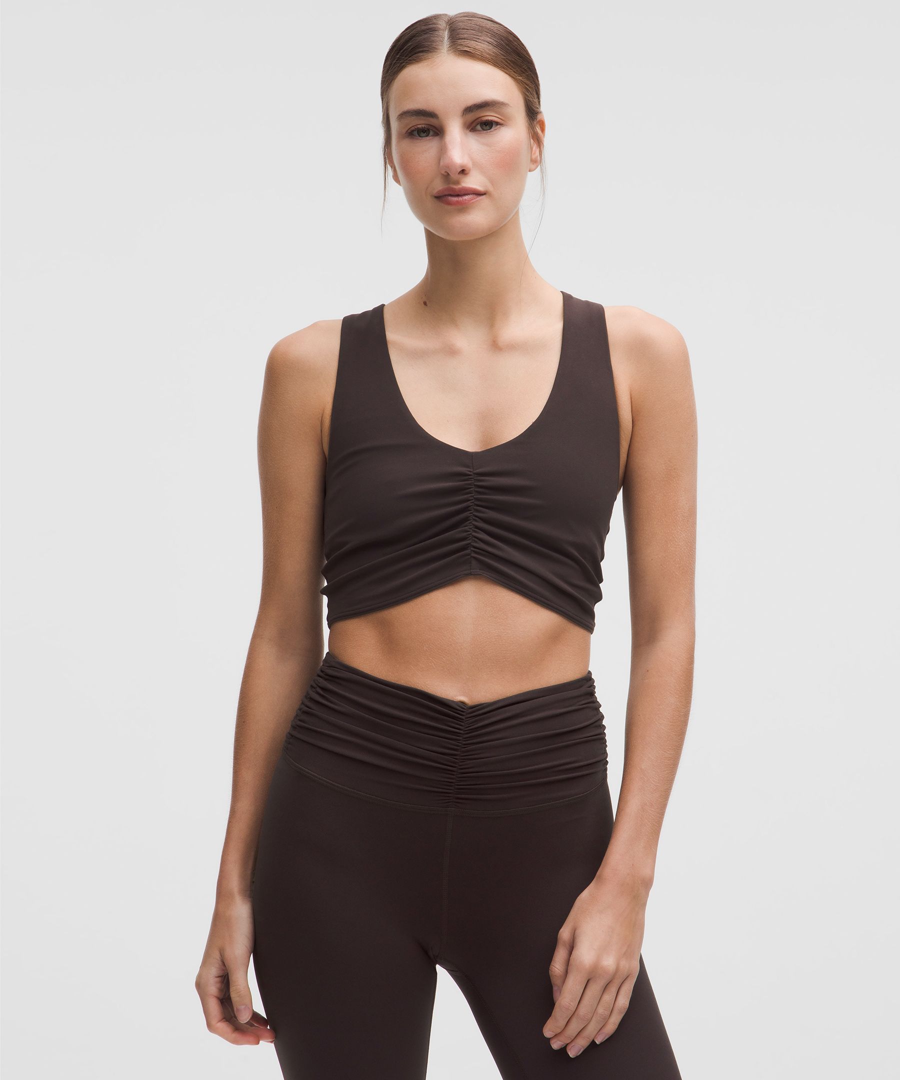 Designed for Yoga. Intended for low-impact activities. Flow freely. Made from our buttery soft Nulu fabric, this ruched longline bra follows your every move so you can float through yoga flows without restriction. | lululemon – Women’s Ruched Nulu Longline Yoga Sports Bra Light Support, B/C Cup – Color Brown – Size 14