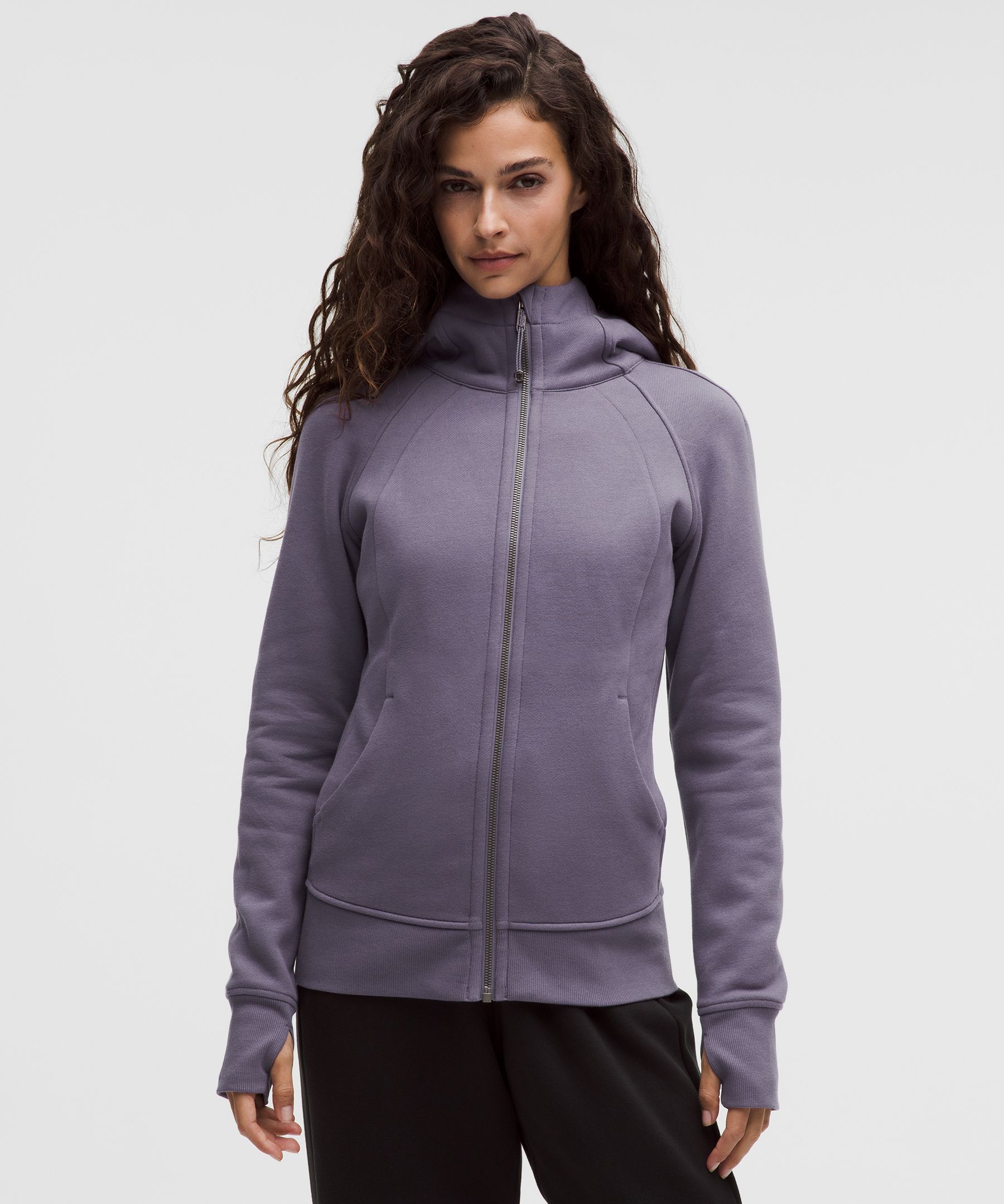 Lightweight, Pocketed, Thumbholes, Thermal. Designed for Casual. An easy fit that floats away from your body. Sits below the waistband for moderate, everyday coverage. Serious about softness. This hoodie is all about fleecy fabric and pairs perfectly with our Scuba sweatpants. | lululemon – Women’s Scuba Full-Zip Hoodie – Color Purple – Size 18