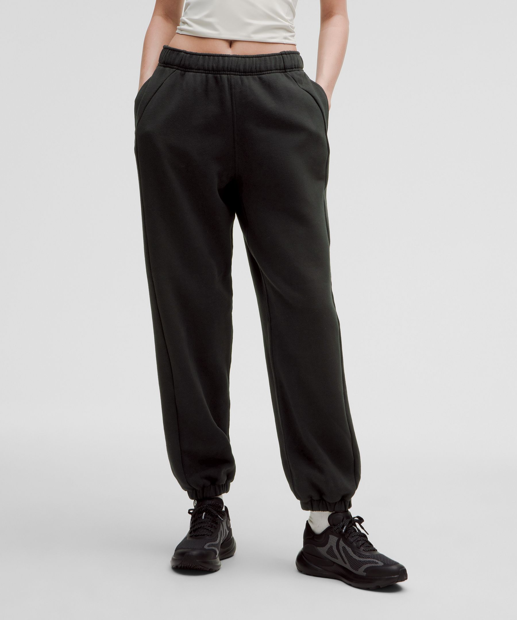 Pocketed, Drawstring. Designed for Casual. Oversized fit is exaggerated and feels extra roomy. Size up for a looser, baggier fit. Intended to sit at ankle for heights of 5’9″ and above. Serious about softness. These Scuba sweatpants are all about fleecy fabric and sinking in to a slouchy oversized fit. | lululemon – Women’s Scuba Mid-Rise Oversized Joggers Tall – Color Black – Size XS