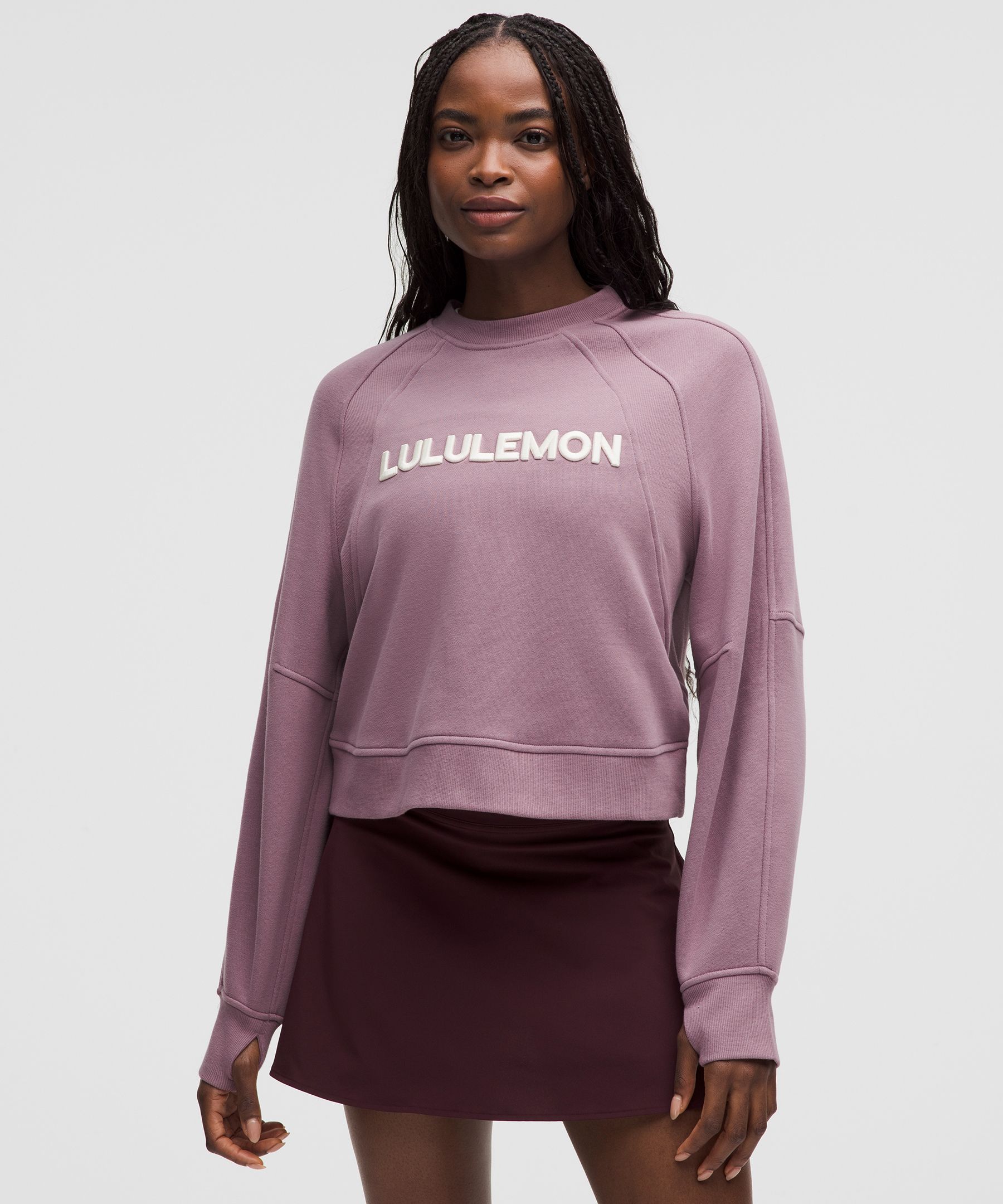Thumbholes. Designed for Casual. An exaggerated fit that feels extra roomy. Not too short, not too long, just right around the waistband. Serious about softness. This pullover sweatshirt is all about plush, fleecy fabric and pairs perfectly with our Scuba sweatpants. | lululemon – Women’s Scuba Oversized Pullover Sweater Wordmark – Color Pink – Size 6