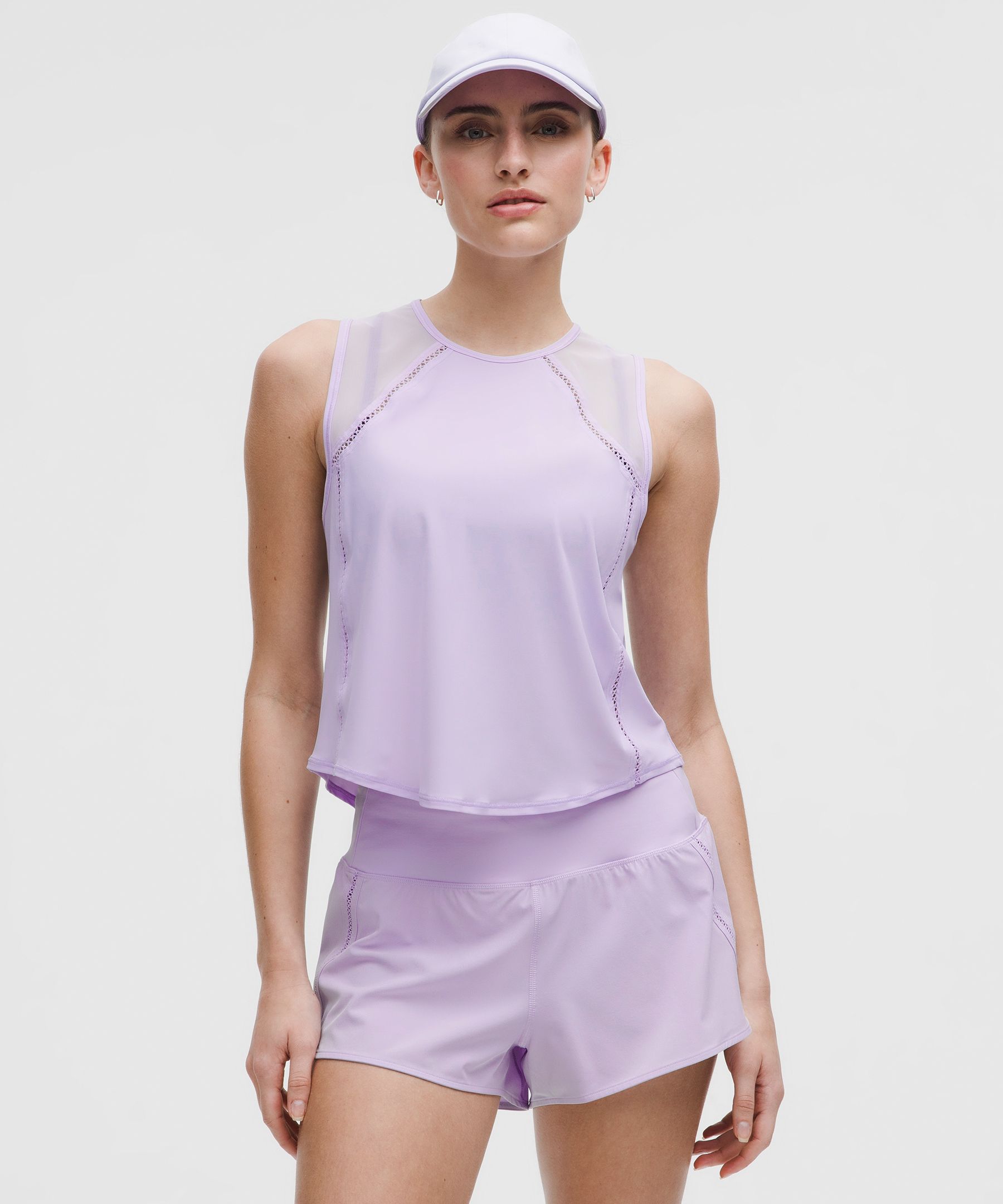 Lightweight. Designed for Running. An easy fit that floats away from your body. Cut above the waist-perfect with high-rise pants. Sprints anyone? This version of our lightweight tank has lace details and more mesh for enhanced airflow and a delicate touch. | lululemon – Women’s Sculpt Cropped Tank Top Lace Trim – Color Purple – Size 12