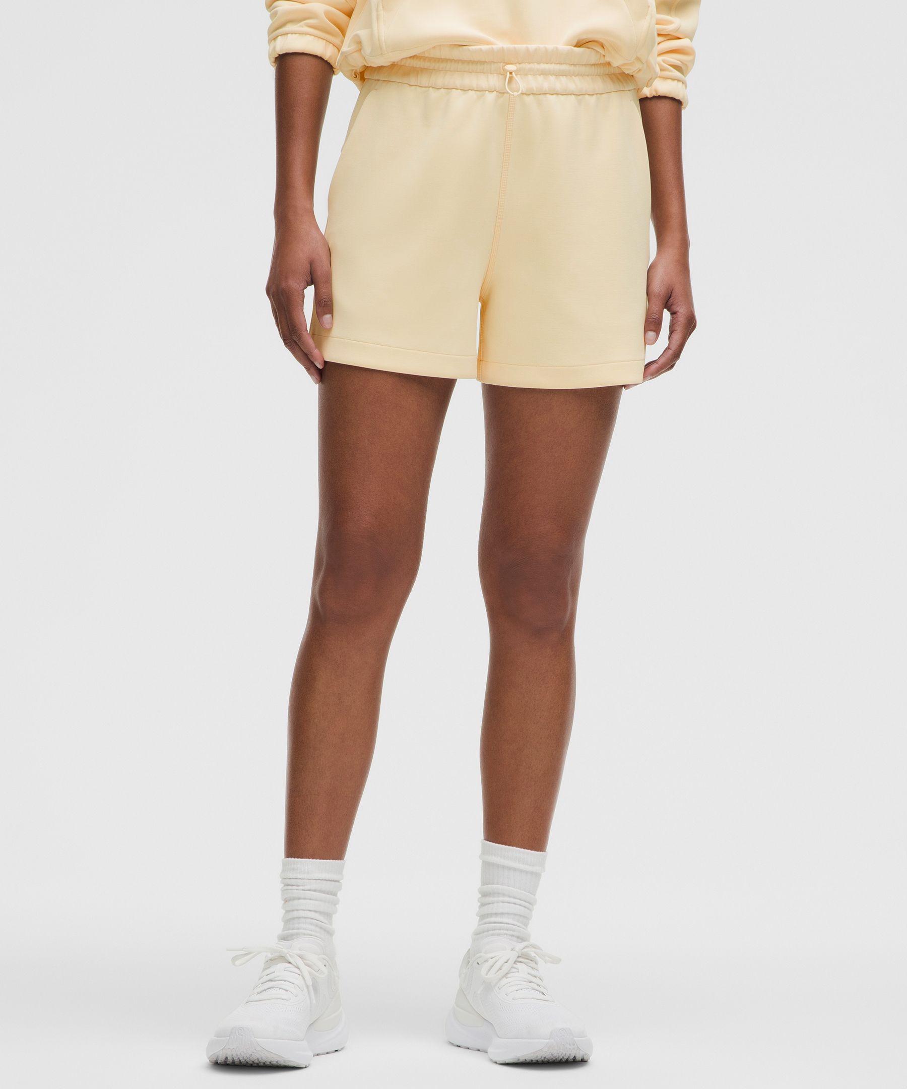 Pocketed, Drawstring. Designed for Casual. Feel it to believe it. These shorts have a peach-fuzz touch that’s impossible to resist. Dress them up or down and enjoy the softness all day. | lululemon – Women’s Softstreme High-Rise Shorts – 4″ – Color Yellow – Size 14