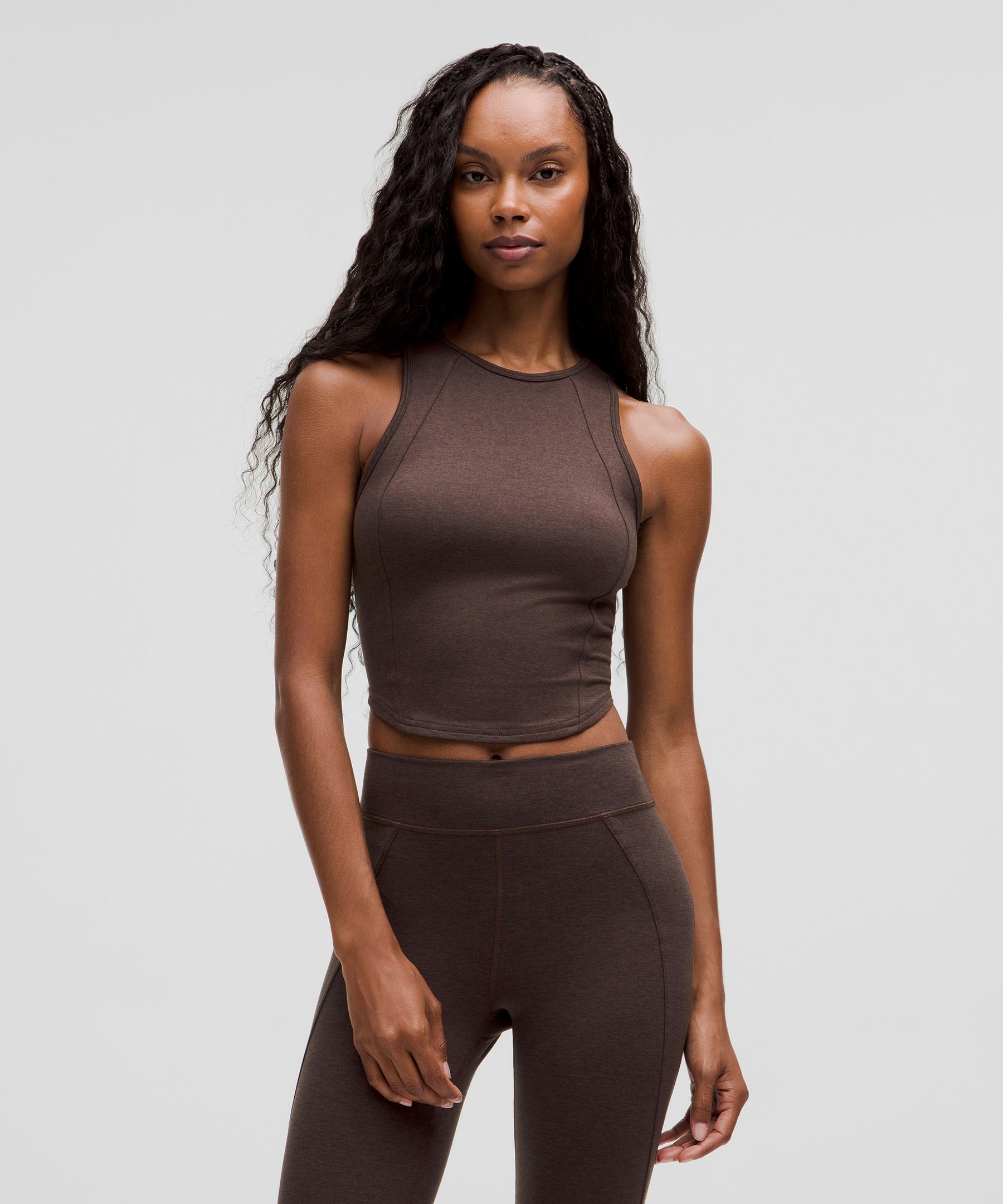 Designed for Yoga and Casual. Contours your body. Cut above the waist-perfect with high-rise pants. Calling in cozy. This tank top is made from a sueded performance fabric that’s warm and comforting when it’s chilly out. | lululemon – Women’s Softy Suedey Crewneck Cropped Tank Top – Color Brown – Size 6