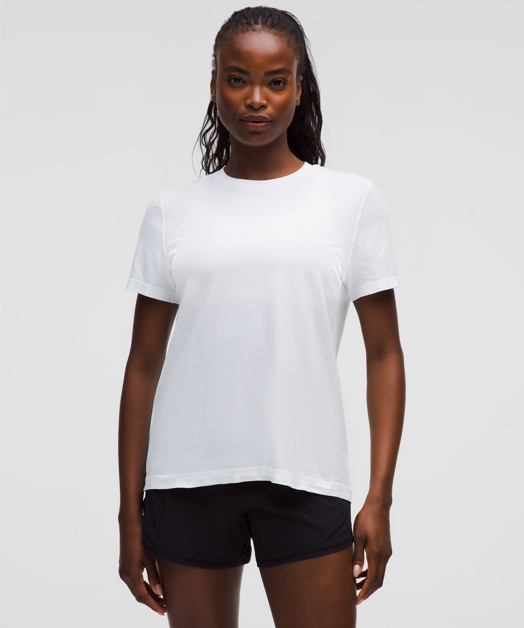 Lightweight, Anti Stink. Designed for Running and Training. A loose fit with a little extra room. Sits below the waistband for moderate, everyday coverage. Go ahead, get sweaty. The Swiftly Relaxed collection is all about high performing-fabric that seamlessly adapts to you and your workout. An updated fit gives you slightly more room to move. | lululemon – Women’s Swiftly Relaxed Short-Sleeve Shirt Hip Length Fit – Color White – Size 8