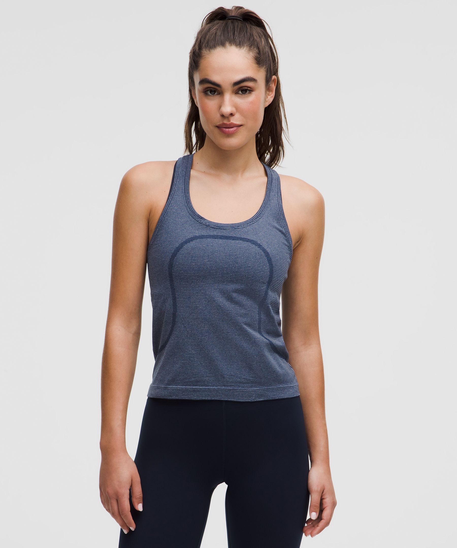 lululemon – Women’s Swiftly Tech Racerback Tank Top 2.0 Waist Length – Color Blue/White – Size 18