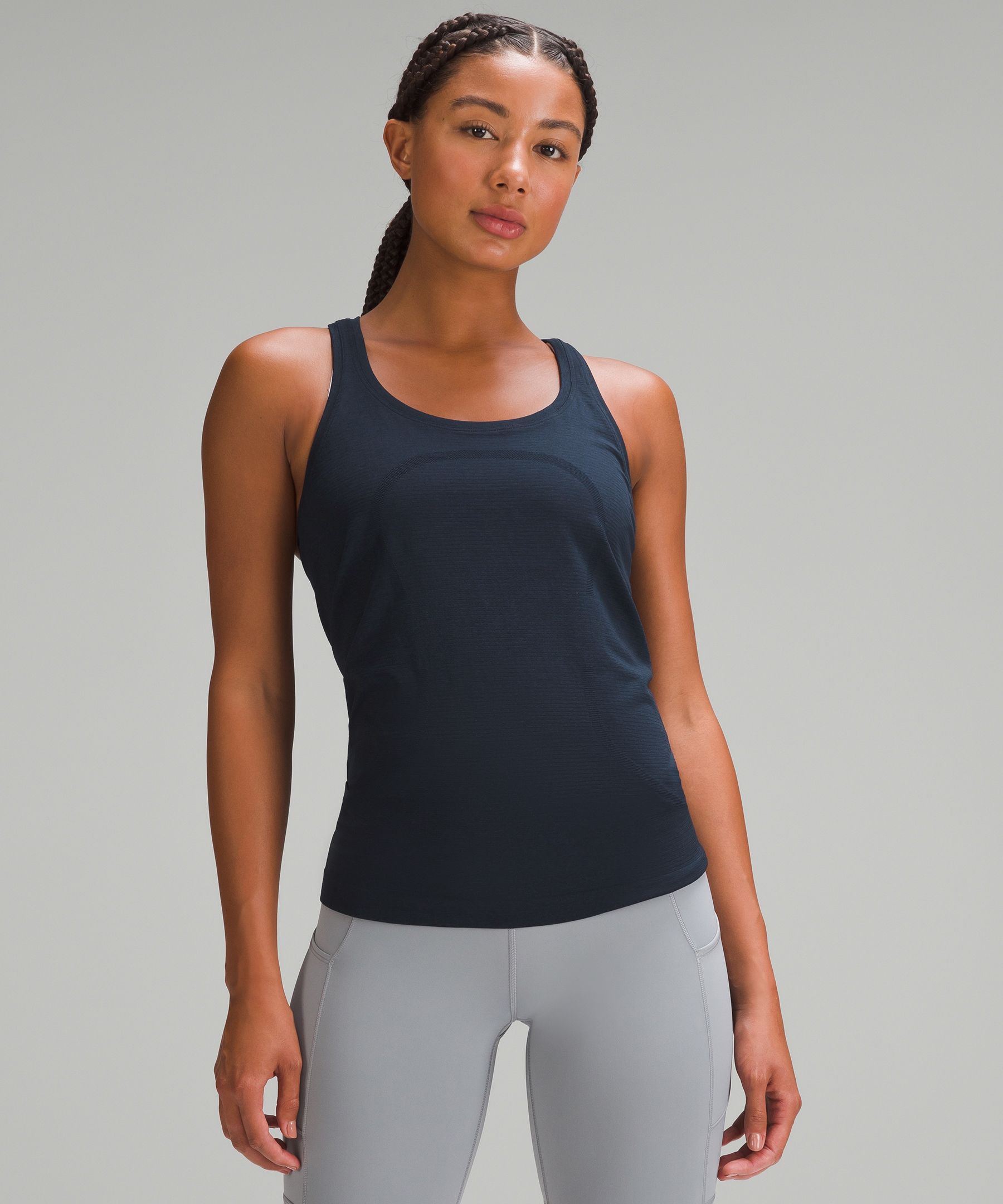 Anti Stink, Seamless. Designed for Running and Training. Go ahead, get sweaty. The Swiftly Tech collection, powered by seamless construction, is the ultimate gear for running and training. | lululemon – Women’s Swiftly Tech Racerback Tank Top 2.4 Hip Length – Color Blue – Size 4