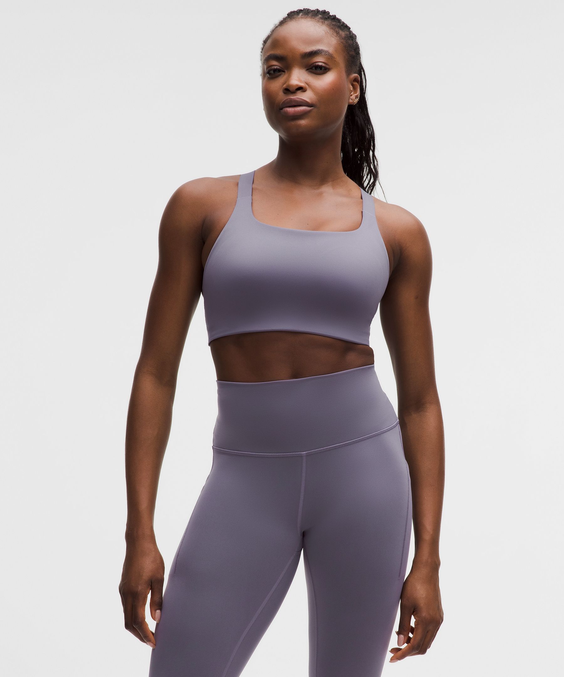Designed for Training. Intended for medium-impact activities. Secure support for training sessions. This sports bra has a held-in feel, minimal seams, and smooth Ultralu fabric that moulds to your body. | lululemon – Women’s Ultralu Square-Neck Workout Sports Bra Medium Support, D/DD Cup – Color Purple – Size 16