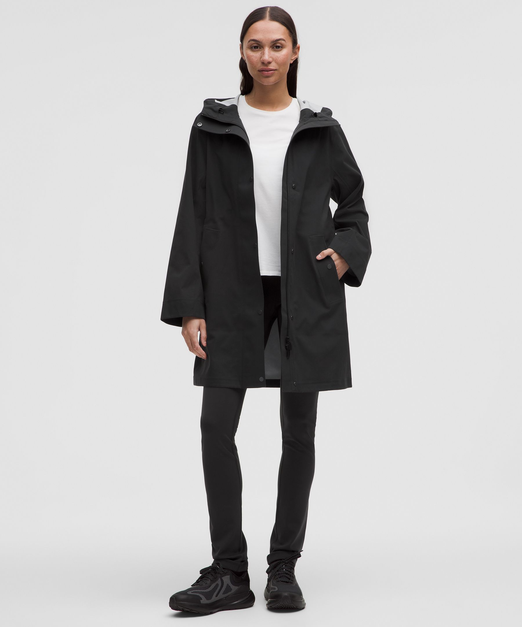 Waterproof, Pocketed, Drawstring. Designed for Casual. Relaxed fit feels roomy and can be worn over larger layers. Size down if you prefer a slimmer fit. You’re never too old for puddle jumping. Make the most of the wettest weather in this seam-sealed, waterproof jacket. | lululemon – Women’s Waterproof Rain Jacket – Color Black – Size XL
