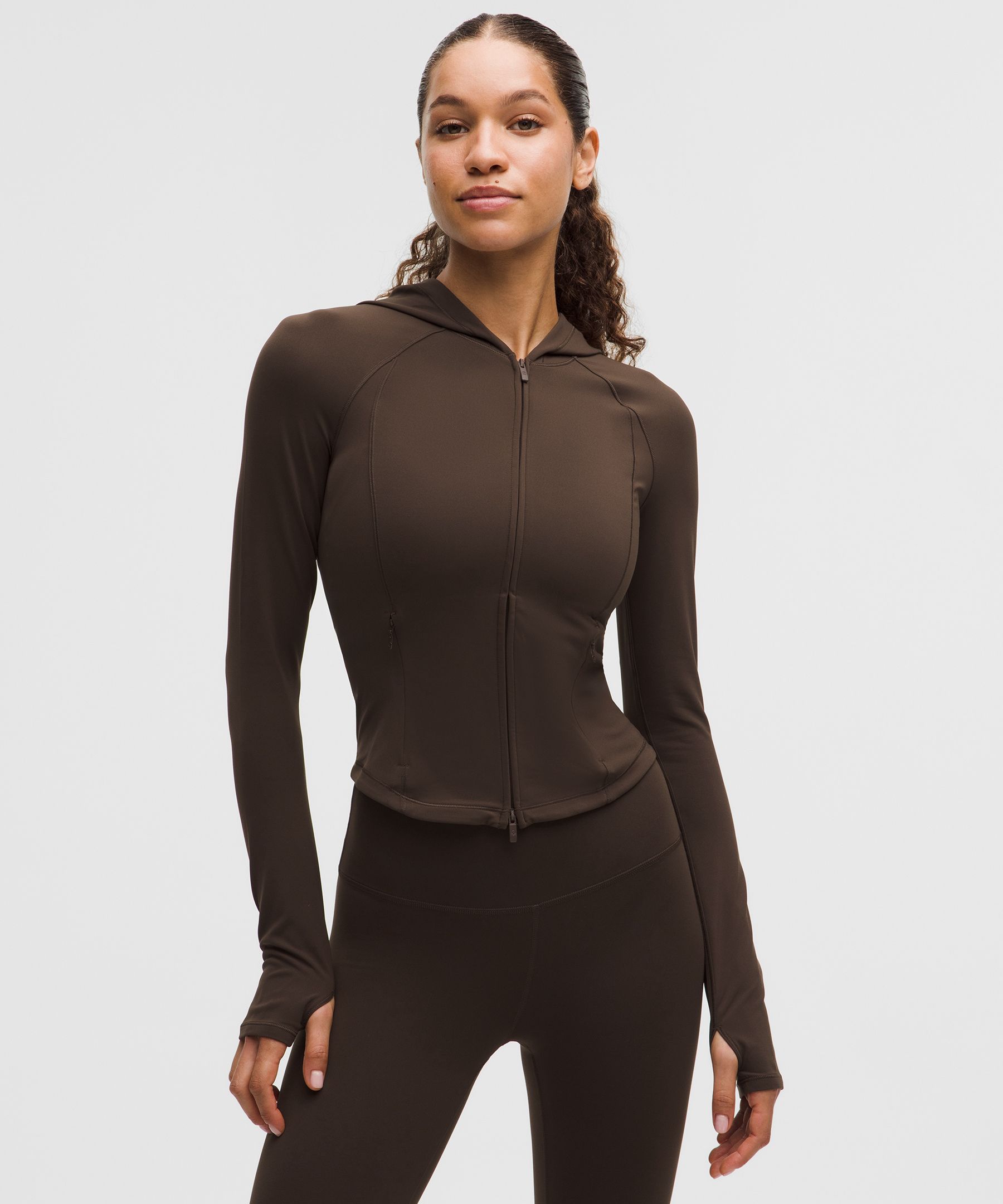 Thumbholes. Designed for Training. Contours your body. Not too short, not too long, just right around the waistband. Train hard, not hot. This hooded jacket is made from ultra-breathable, fast-drying Everlux fabric for unrivaled performance through every step and rep. | lululemon – Women’s Wunder Train Full-Zip Jacket – Color Brown – Size 14