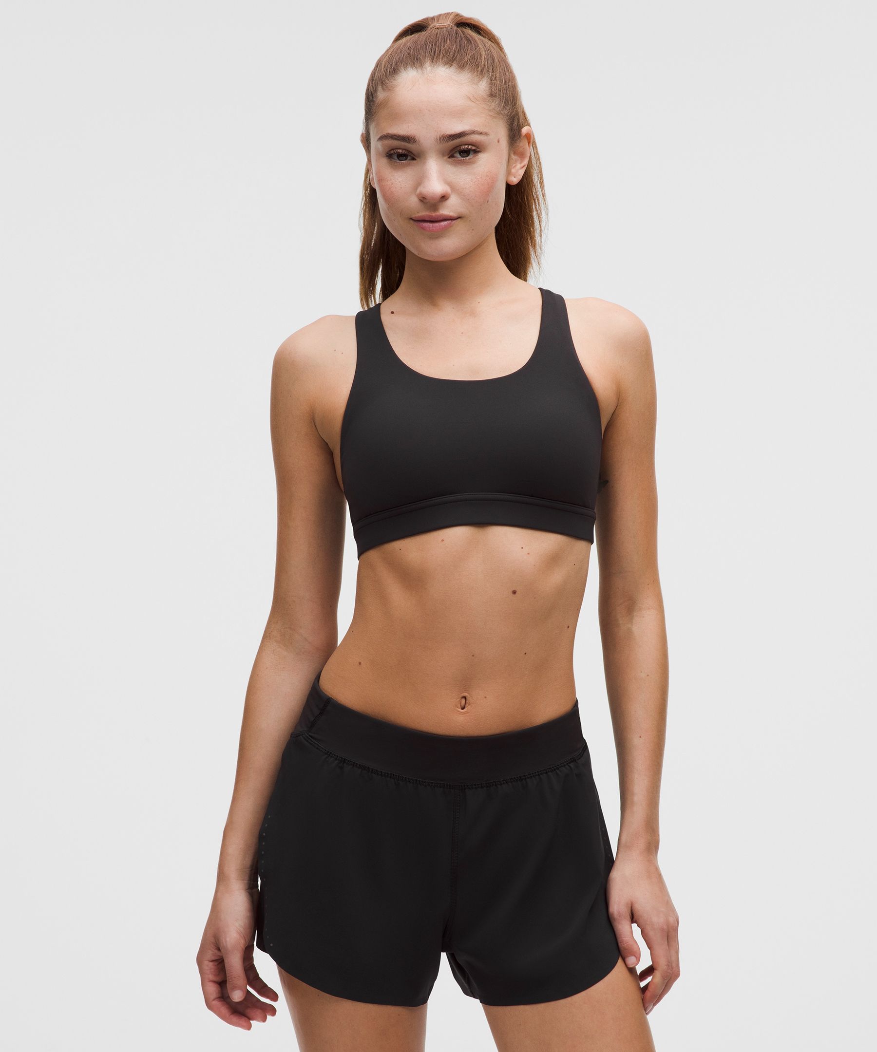 Designed for Training. Intended for medium-impact activities. Train hard, not hot. This sports bra gives you the perfect combination of support and ventilation with highly breathable Everlux fabric and a mesh racerback design. | lululemon – Women’s Wunder Train Mesh-Back Sports Bra Medium Support, B/C Cup – Color Black – Size 18