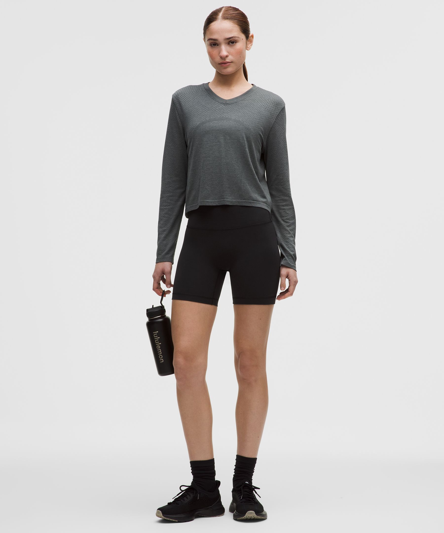 Drawstring. Designed for Training and Pilates. Train hard, not hot. Made with fast-drying Everlux fabric, the Wunder Train collection manages heat and sweat so you stay comfortable and focused. We removed the front seam from these shorts for a smooth look and feel. | lululemon – Women’s Wunder Train No Line High-Rise Shorts – 6″ – Color Black – Size 4