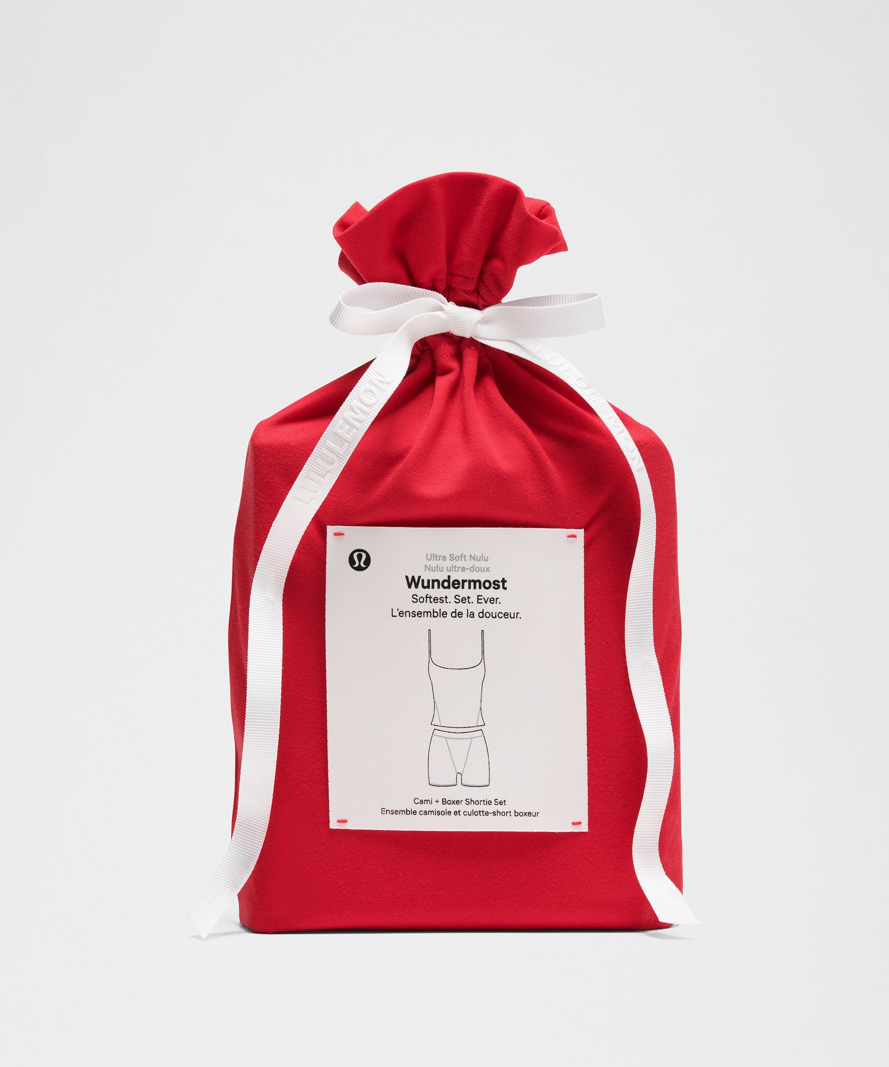 Designed for Casual. Fabric is double layered for coverage, support, and an ultra-soft feel on both sides. Cami tank is waist length, with a tight fit that contours your body. Shortie underwear are super-high rise and 5″ length. Delicate front seams on the underwear are inspired by a classic boxer aesthetic. Softest. Set. Ever. To create this giftable lounge set, we paired our Wundermost cami tank with boxer-inspired shortie underwear in a soft, reusable bag. | lululemon – Women’s Wundermost Ultra-Soft Nulu Cami and Boxer Shortie Set – Color Red/Neon – Size Large