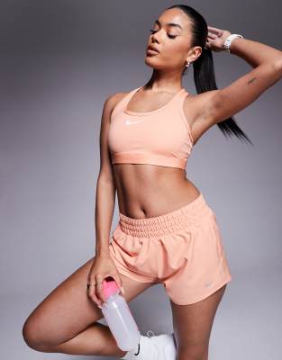 Nike Training Swoosh medium support sports bra in coral-Pink